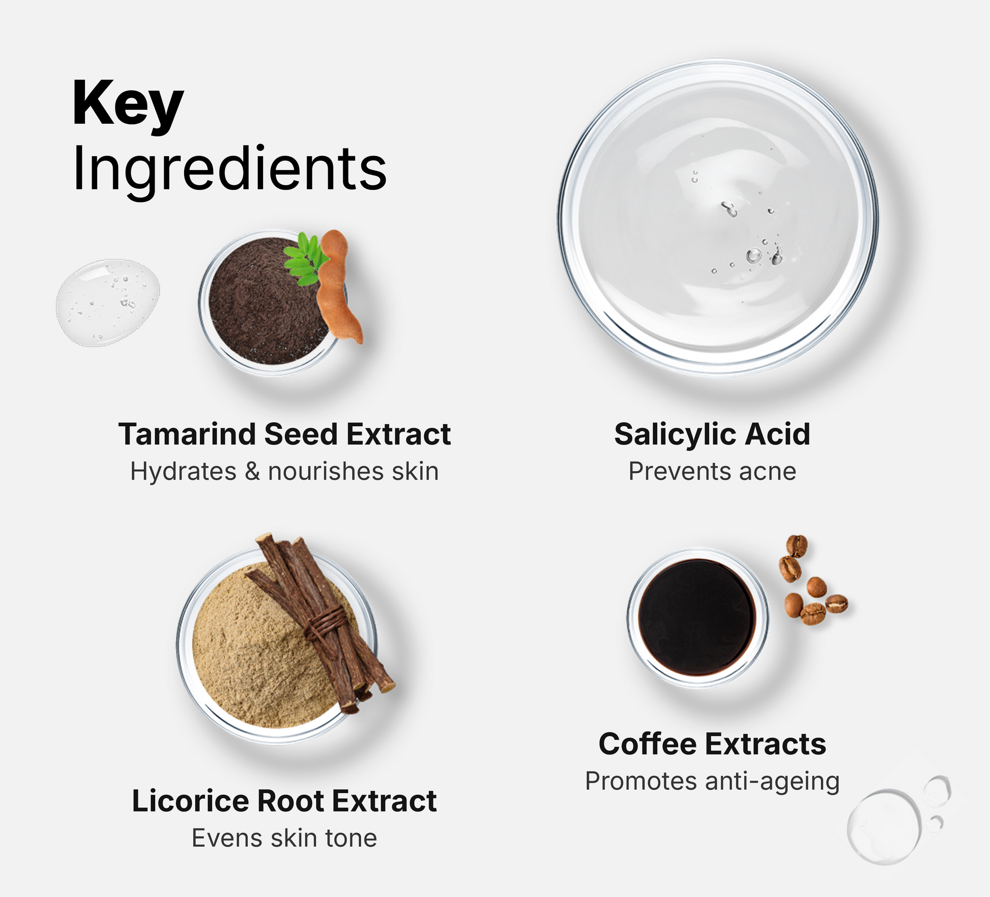 Our 2% Salicylic Acid, is enriched with Coffee, Tamarind Seed and Licorice Root extracts. This serum is made by dermatologists to combat acne and breakouts, unclog pores, and prevent comedones, offering a revitalizing solution for clearer and healthier-looking skin.